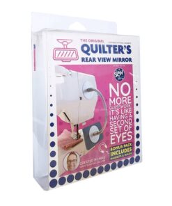 The Quilter’s Rear View Mirror adds a convenient way to see behind your presser foot, enabling you to precisely start and stop accurately while free motion quilting.