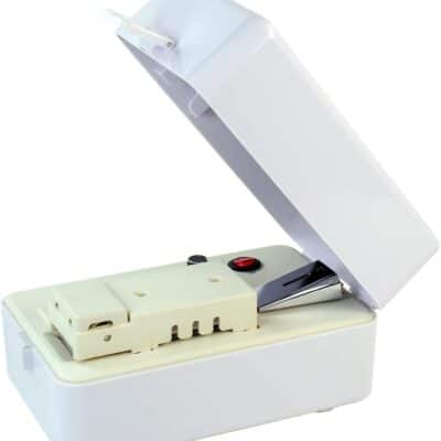 Create single fold bias tape quickly with the push of a button, making up to 12 feet in under 60 seconds. Features adjustable heat settings suitable for cotton, silk, and more, with auto shut-off after 10 minutes. Includes 6 bias tips for various widths and is portable, lightweight, perfect for sewing classes.